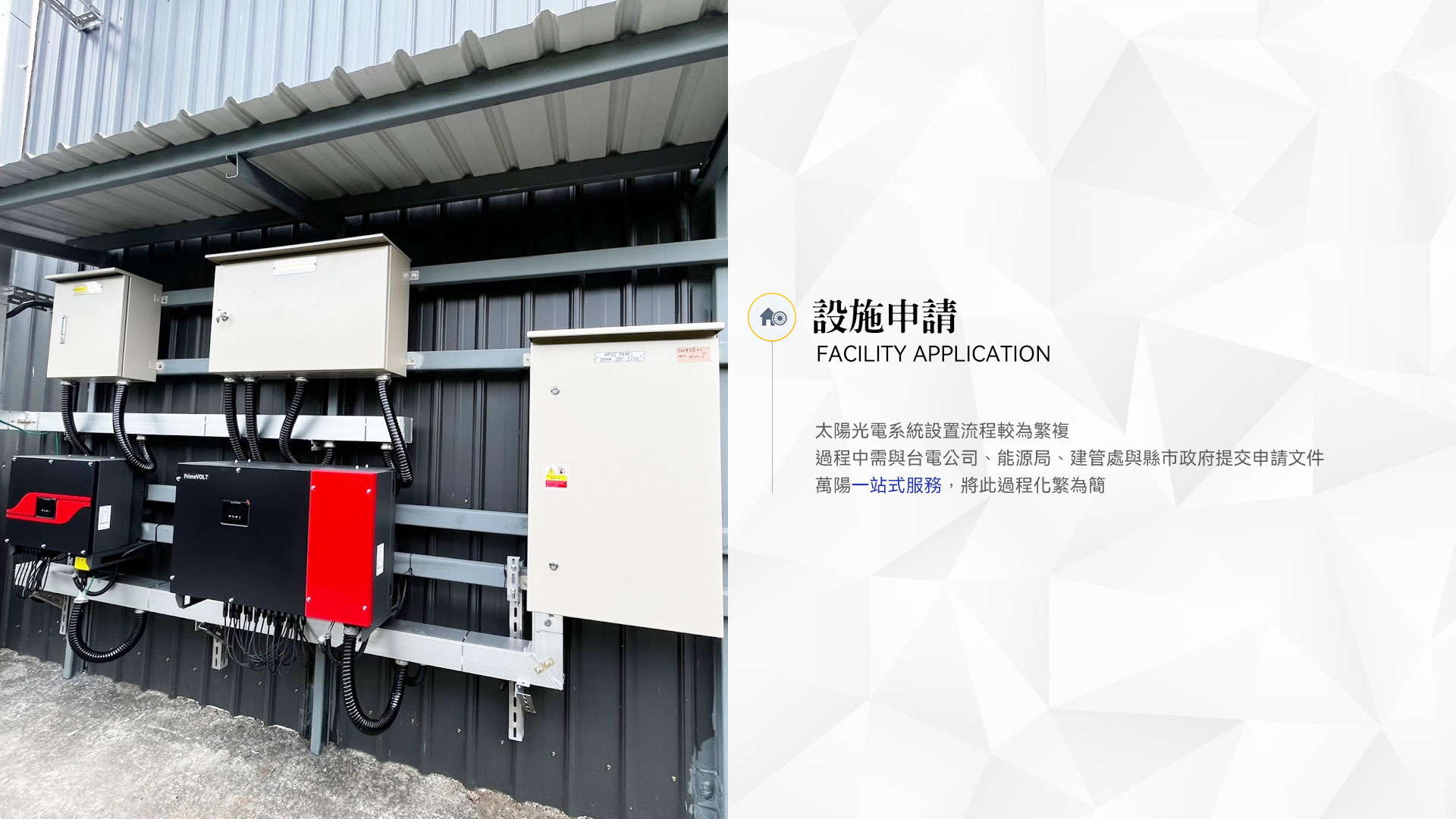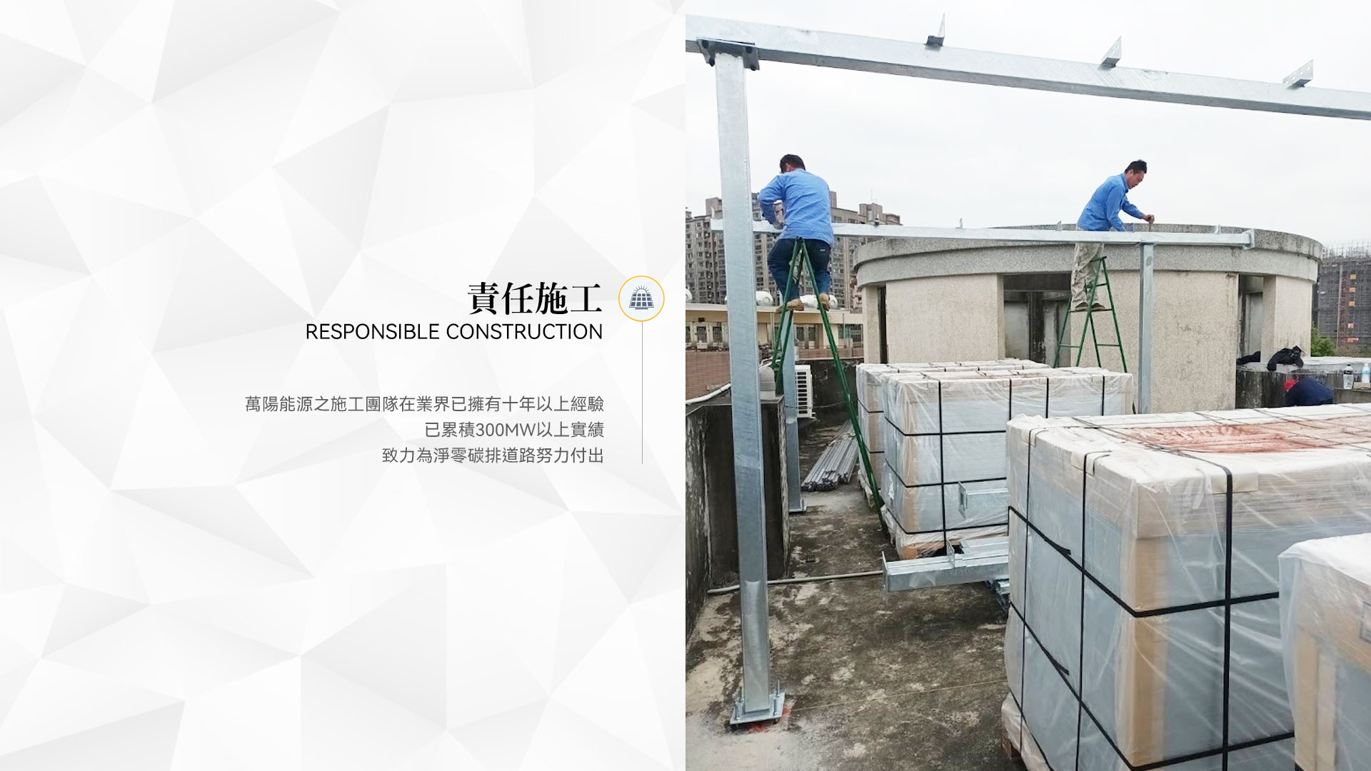 各項成就指標 Leading solar developer and EPC 0+ MW 累積設置容量 0+ 座公園 減碳量相當於 幾座大安森林公園 0+ 場數 全球共計案場數 0+ 萬公噸 累積減碳量 0+ 萬戶 相當於一年提供 多少戶家庭用電 0+ 億度 累積發電量 系統維運 聯絡我們 施工工法及選材 公司簡介 安全措施 案場實績 常見問題 | 各項成就指標 0+ MW 累積設置容量 0+ 座公園 減碳量相當於幾座大安森林公園 0+ 場數 全球共計案場數 0+ 萬公噸 累積減碳量 0+ 萬戶 相當於一年提供多少戶家庭用電 0+ 億度 累積發電量